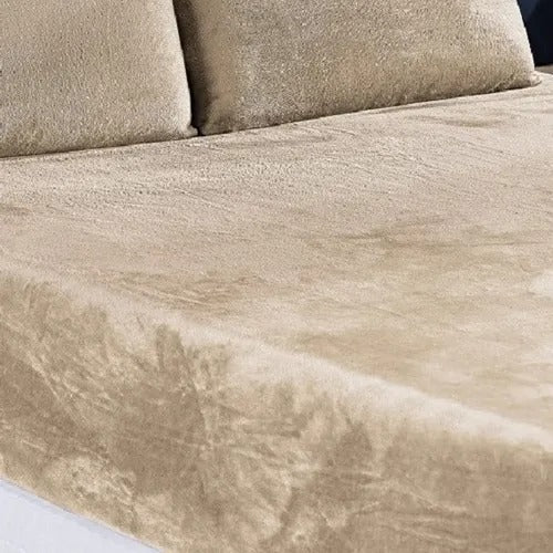 JOGO LENÇOL CASAL 4 PEÇAS FLEECE - BEGE