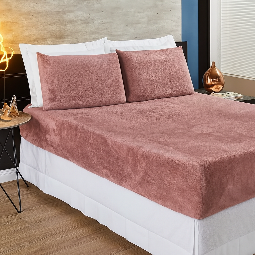 JOGO LENÇOL CASAL 4 PEÇAS FLEECE - ROSA CLARO